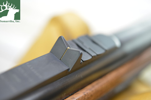 Rigby express sights with a single fixed V and two folding leaves dovetailed into the quarter-rib