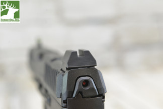 The trigger bar is coated in nickel-Teflon, which HK says delivers a smoother pull and cleaner break. Reviewers have generally confirmed that the A1 trigger improves on what was already one of the better factory striker-fired triggers on the market. Pull weight sits around 5 pounds, with minimal take-up, a defined wall, and a short, tactile reset. Ambidextrous controls remain standard, including HK's signature dual-paddle magazine release, bilateral slide stops, and the rear-mounted charging supports that VP9 shooters know well. Slide serrations have been updated to the more aggressive maritime pattern, front and rear.