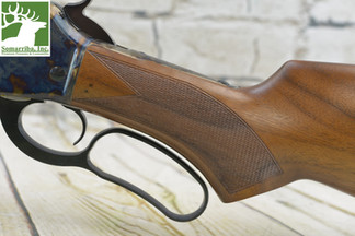 The stock is crafted from A-grade American Walnut, selected for both strength and beauty. Its checkering is sharp, even, and precise, offering excellent purchase without compromising the rifle’s classic lines. Together, the steel and wood give the 1886 a presence that feels equally at home on display or in the hands of a seasoned hunter preparing for a long day in rugged terrain.